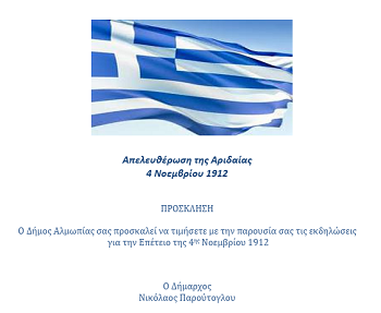 ΑΡΙΔΑΙΑ: ΔΕΙΤΕ ΤΟ ΠΡΟΓΡΑΜΜΑ ΕΟΡΤΑΣΜΟΥ ΕΠΕΤΕΙΟΥ ΤΗΣ 4ης ΝΟΕΜΒΡΙΟΥ 1912 ΣΤΗΝ ΠΟΛΗ ΤΗΣ ΑΡΙΔΑΙΑΣ…