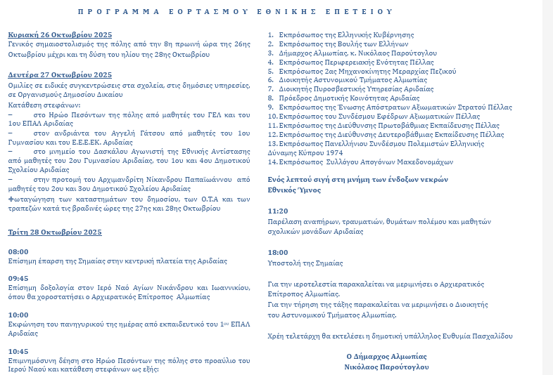 ΑΡΙΔΑΙΑ: ΔΕΙΤΕ ΠΩΣ ΘΑ ΓΙΟΡΤΑΣΕΙ Η ΑΡΙΔΑΙΑ ΤΗΝ ΕΘΝΙΚΗ ΕΠΕΤΕΙΟ ΤΗΣ 28ης ΟΚΤΩΒΡΙΟΥ...
