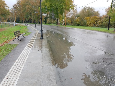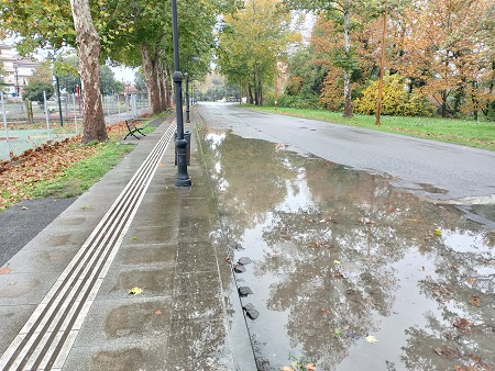 Ειδικότερα, εδώ και χρόνια, όταν βρέχει, έμπροσθεν της παιδικής χαράς & πάρκο κυκλοφοριακής αγωγής, αλλά και έμπροσθεν του γηπέδου ''ΛΑΓΟΥΔΗΣ'', πιθανώς λόγω κακοτεχνίας του οδοστρώματος, παρατηρείται συσσώρευση όμβριων υδάτων, σε μεγάλες ποσότητες και σε αρκετά μέτρα του οδοστρώματος, με αποτέλεσμα να είναι επικίνδυνη η κυκλοφορία των οχημάτων, αλλά και των πεζών που χρησιμοποιούν το παρακείμενο πεζοδρόμιο.