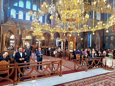 Η επιμνημόσυνη δέηση τελέστηκε με βαθιά κατάνυξη από τους πατέρες κ.Χριστόδουλο Καραγιάννη και Σπυρίδων Κουφό. Οι ιεροψάλτες απέδωσαν με ευλάβεια τους ύμνους, δημιουργώντας μια συγκινητική και πνευματικά φορτισμένη ατμόσφαιρα μέσα στον ναό που γέμισε από πιστούς και μέλη και φίλους του συλλόγου και της τοπικής κοινωνίας.