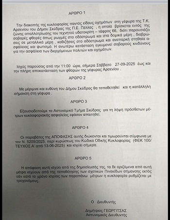 1) Την αποκατάσταση του οδοστρώματος πάνω στην γέφυρα , την αντικατάσταση των επικίνδυνων κιγκλιδωμάτων και τον φωτισμό της , ενέργειες απαραίτητες μεταξύ άλλων που ουσιαστικά τις προσδιορίζει το έγγραφο της απόφασης του Αστυνομικού Διευθυντή Πέλλας για το κλείσιμο της.(Άρθρο 1)